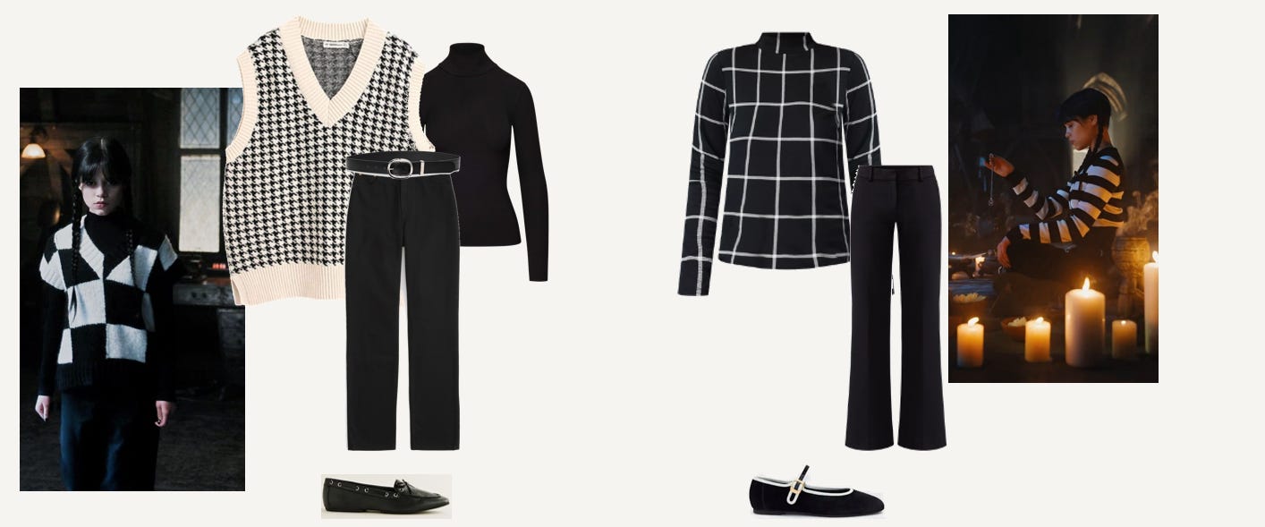 The hundreds of Halloween-inspired movies also make the season festive. This week, we want to talk about what your favorite Halloween movie/tv show says about you. We’re pairing this with some work clothes ideas that will add a little spook to your wardrobe this season.